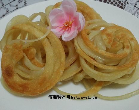 “一窝丝”又叫“盘丝饼”,是山西省忻州地区宁武县的特色小吃,历史悠久,曾经是高级宴席的甜点。“一窝丝”以酥、脆、香为贵,具有色淡黄,味甘甜,质酥脆的特色。鲜食时甜绵可口,干食时酥脆清香。其形状像曲蜷待腾的蛟龙,提起一根线,放下一窝丝,动一动,散成一堆;嚼一嚼,其味无比。存放一至两月,色、味不变,软硬程度不变。后来,随着人们生活的富裕程度日益提高,白面、胡麻油家家不缺,“一窝丝”在全县农村兴盛起来,成为人们迎宾待客的佳品。